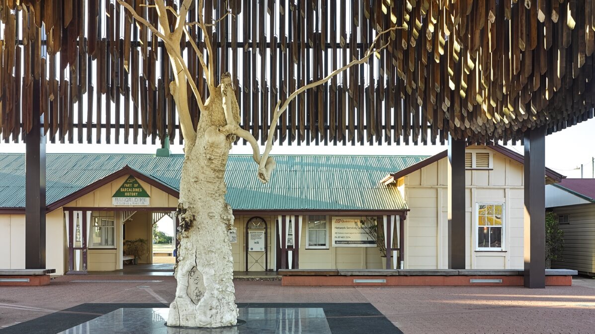 Following the death of the politically significant Tree of Knowledge, the Barcaldine Regional Council approached Brian Hooper Architect and architectural firm m3architecture to design a memorial in acknowledgement of the tree and its historical value. This project was implemented as part of a larger revitalisation of the Barcaldine Main Street precinct, which aimed to create a destination for future projects with heritage and cultural value.