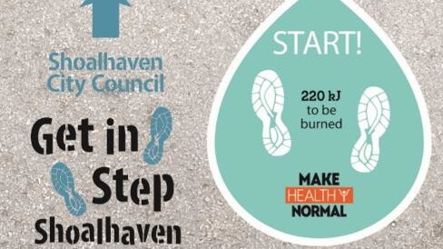 In March 2017, Shoalhaven City Council was approached by Illawarra Shoalhaven Local Health District (NSW Health) to team up and promote healthy living (Make Healthy Normal umbrella) in the Shoalhaven. NSW Health provided decals and Shoalhaven City Council developed the Get in Step program to activate the decals and promote accessible fitness. The decals depicted are visual aids on the pathways and identify distance and kilojoules burnt.