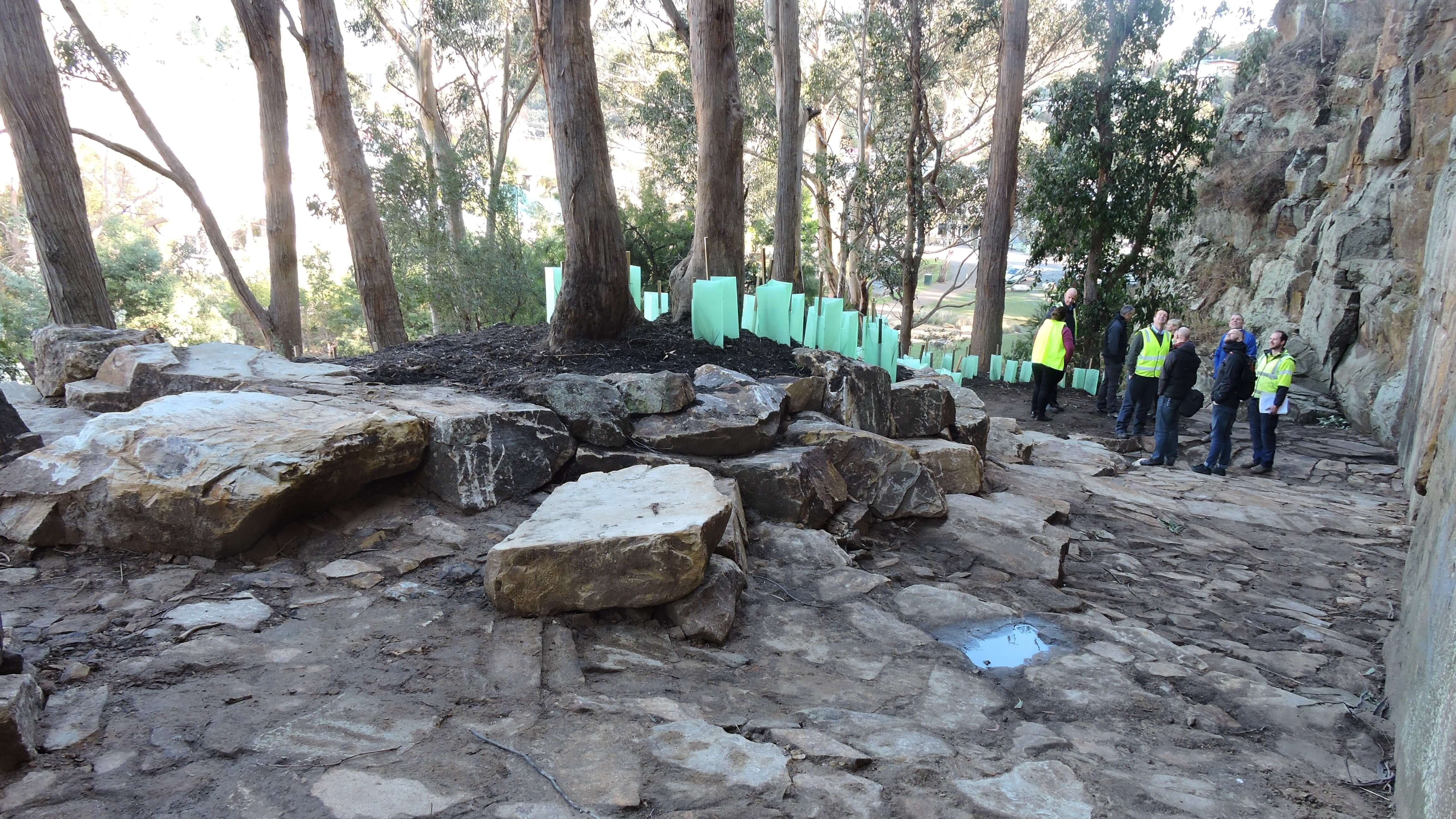 - The collaboration of interests in the project enabled an injection of practicality, adaptability and flexibility during construction. For example, a larger supply of stone than expected was discovered on-site, which resulted in a decision to pave the immediate base of the cliff, rather than importing gravel for construction of belay terraces. This was a great outcome from a cost, long-term maintenance, and erosion stabilisation perspective.