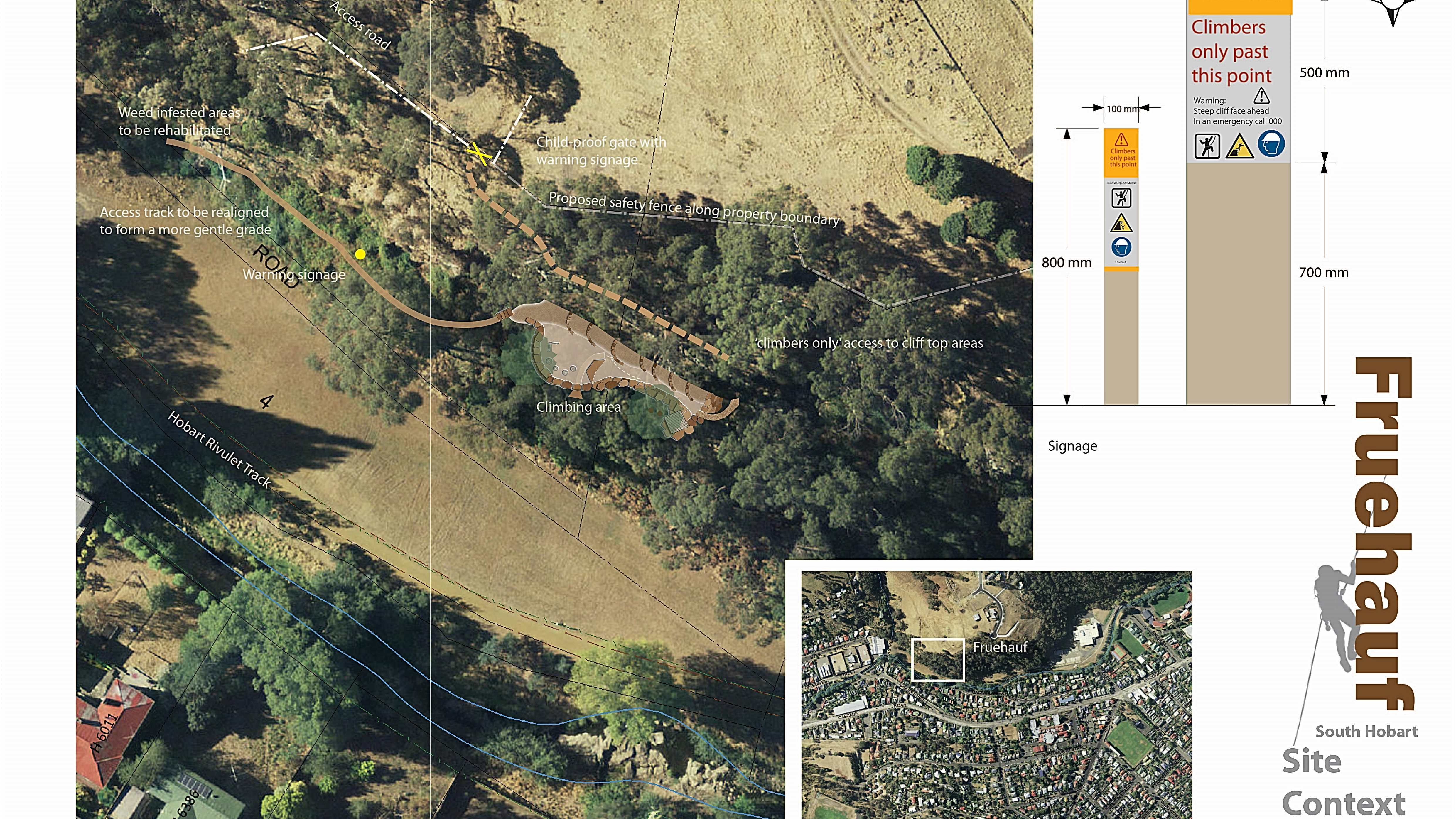 The Fruehauf Climbing Cliff is one of a number of projects within the Hobart Rivulet Park that has been implemented by the City of Hobart. Planning for the Fruehauf Climbing Cliff was a highly collaborative project with representatives from the climbing community involved from project inception through to construction, and ongoing maintenance.