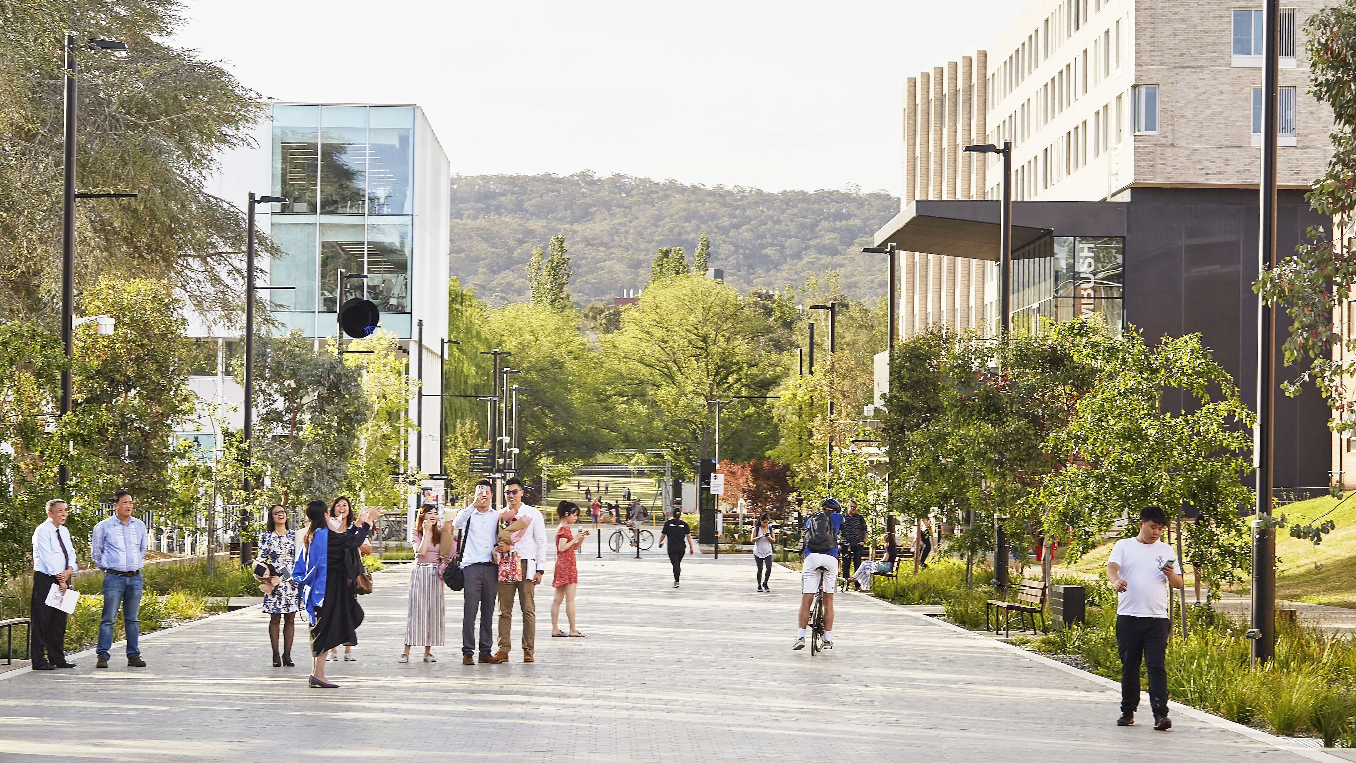 - The new University Avenue provides a generous central boulevard predominantly used as a shared pedestrian/cycleway, encouraging active transport access to Campus.