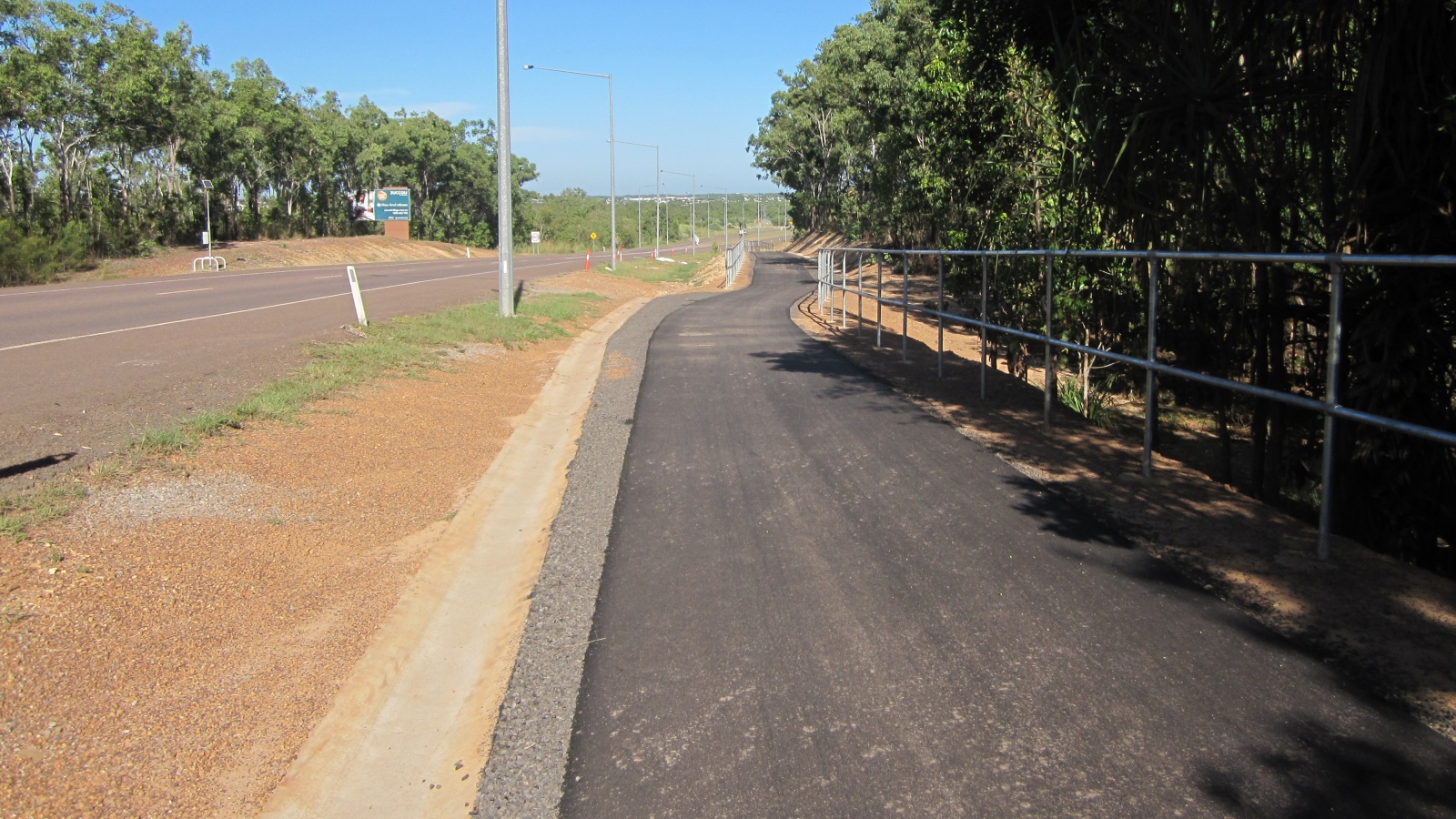 The path was completed in 2016 and provides a connection between the southern suburbs of Palmerston, across the Stuart Highway to the Howard Springs shared path network and rural community. The path is a key route for cycle commuters, provides a cycle connection to two schools and also supports active recreation by linking with a major ‘rail trail’ recreational path.