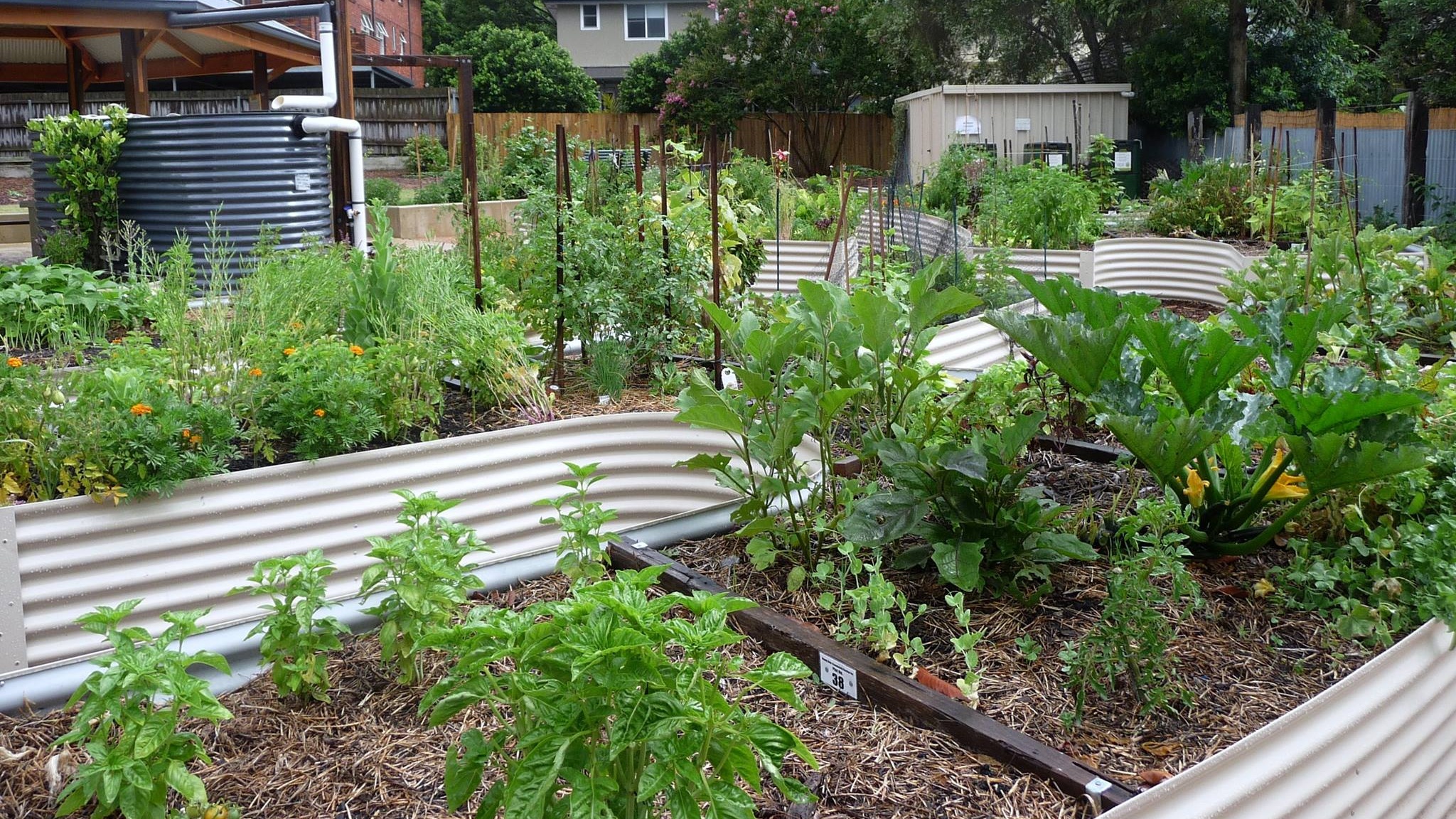 - Large raised communal garden beds, constructed of galvanised iron, providing space for garden members to grow a wide variety of seasonal produce and herbs such as tomatoes, parsley, spring onions, artichokes, pumpkin and more.