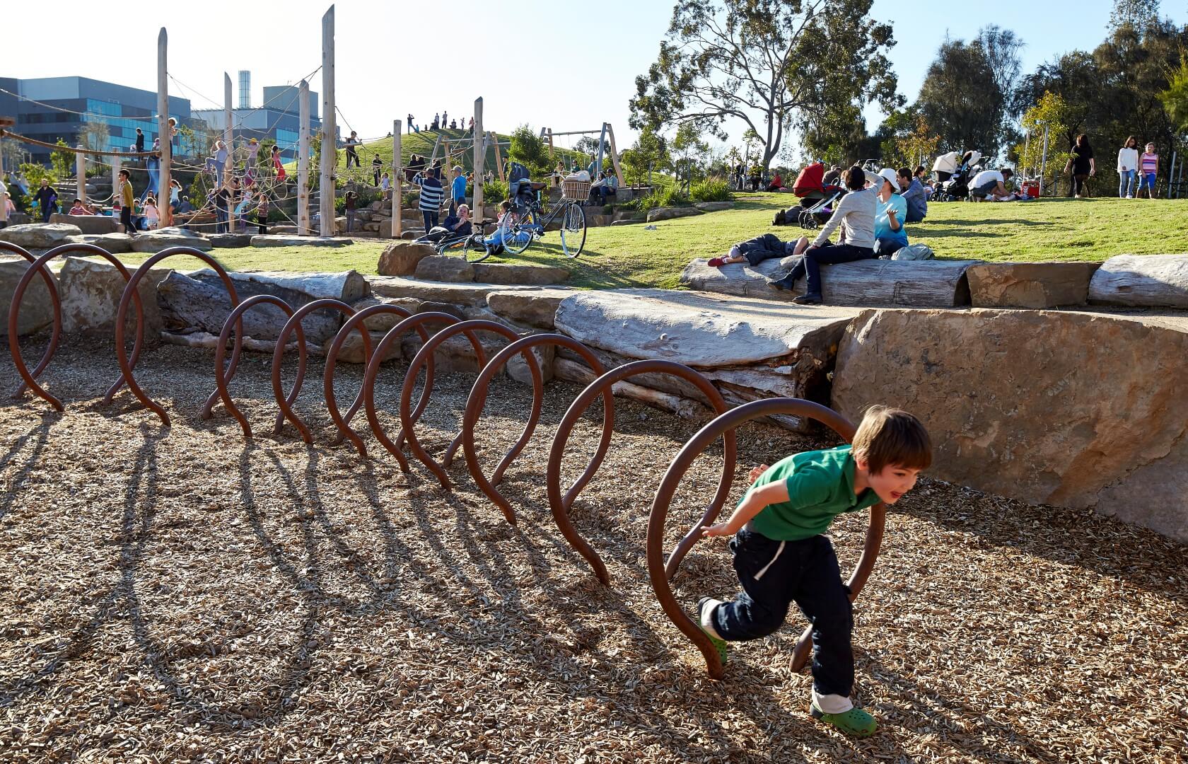 The seven Wurundjeri seasons of Melbourne are central to the project landscape, informing the structure, planting and play experiences of the space. The playground offers new opportunities for challenging and explorative play, encouraging children of all ages to reconnect with nature and each other.