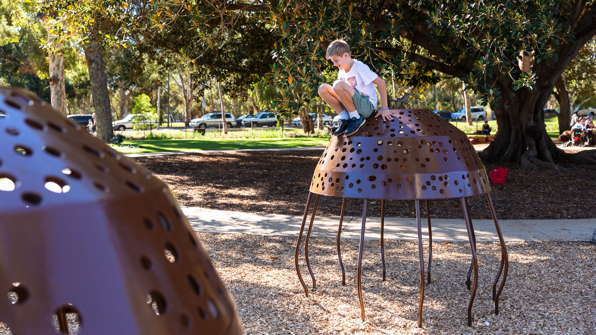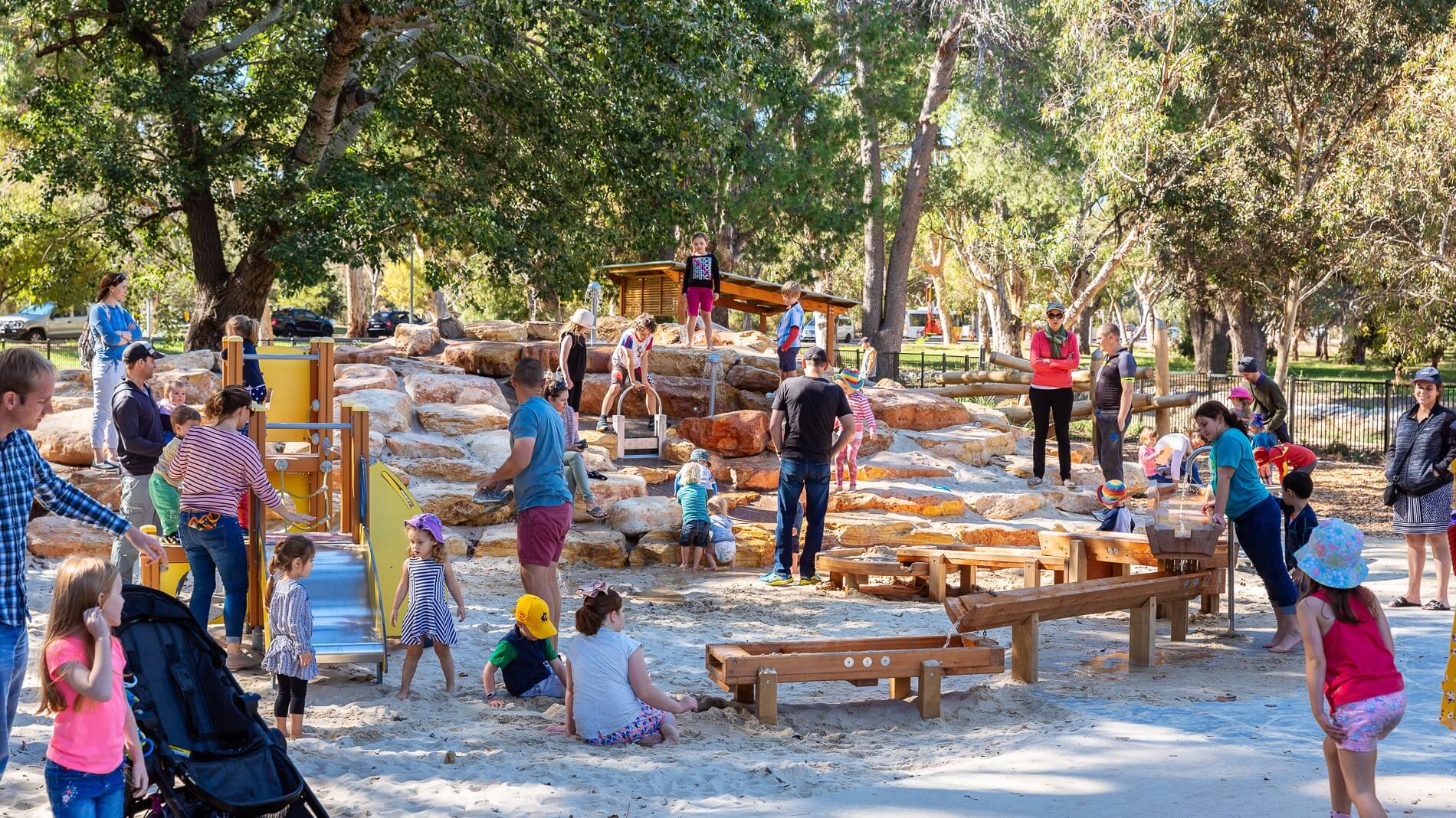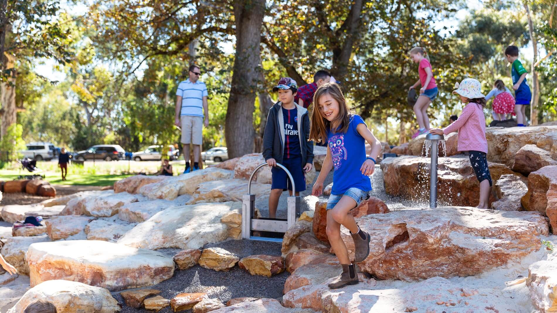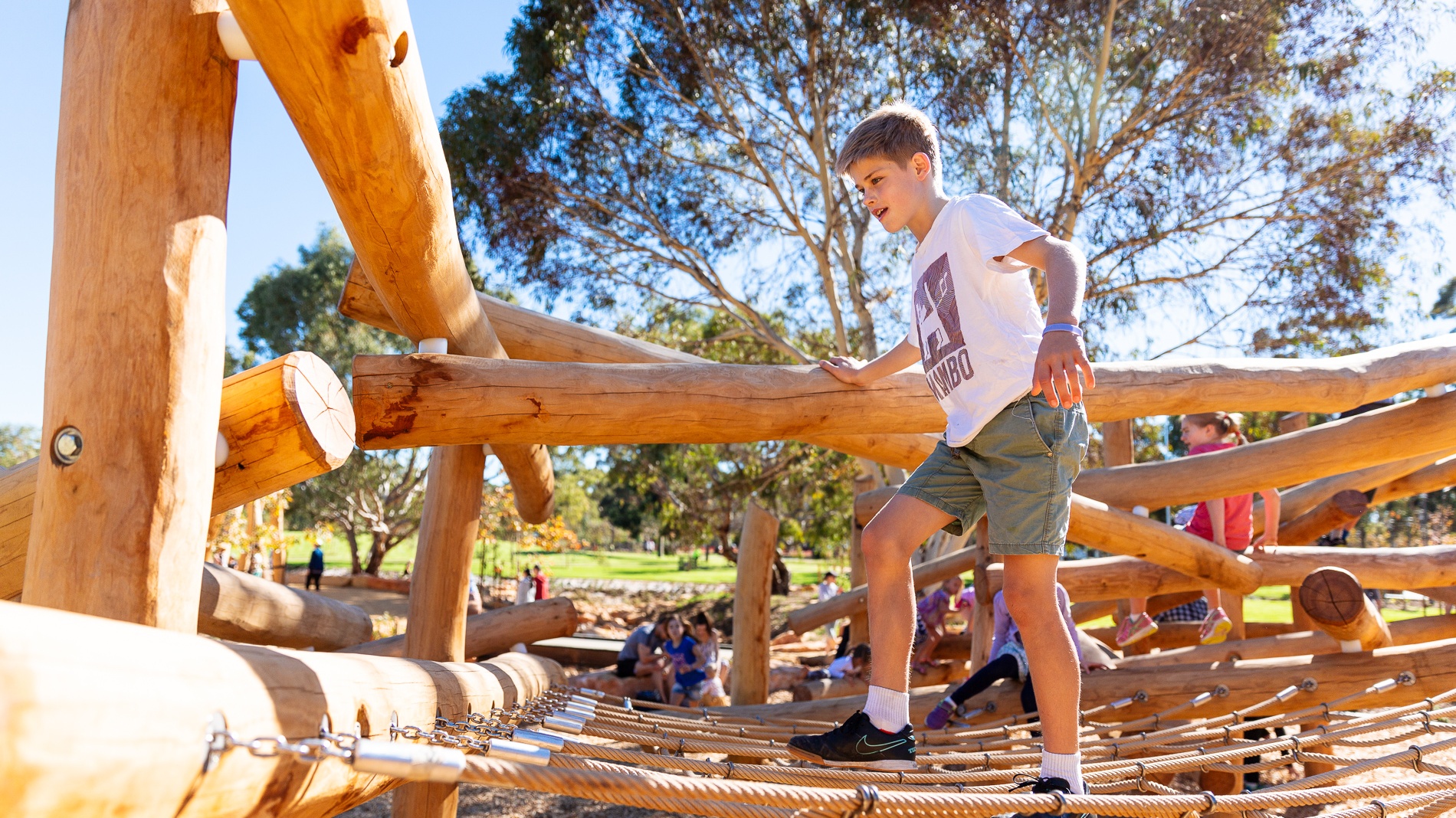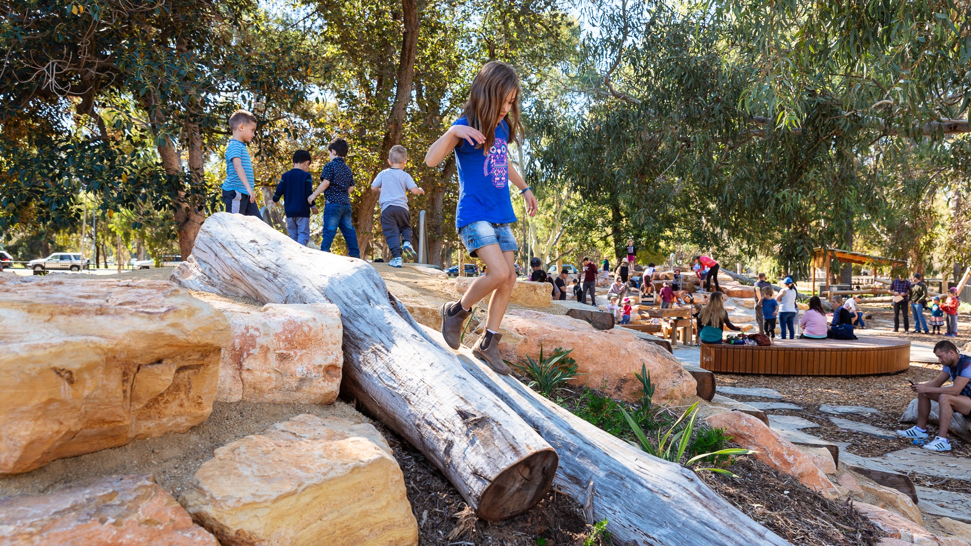 - Multiple spaces for kids of all ages and abilities to play, explore and challenge themselves in a safe manner have been provided. The core themes are Learning to Play, Playing to Learn and Wild Play. Facilities range from fully fenced areas with interactive water and sand play, themed cubbies, artworks and climbing elements aimed at toddlers, through to creek beds, a super-sized Wiltja and timber climbing frames for the highly adventurous kids.