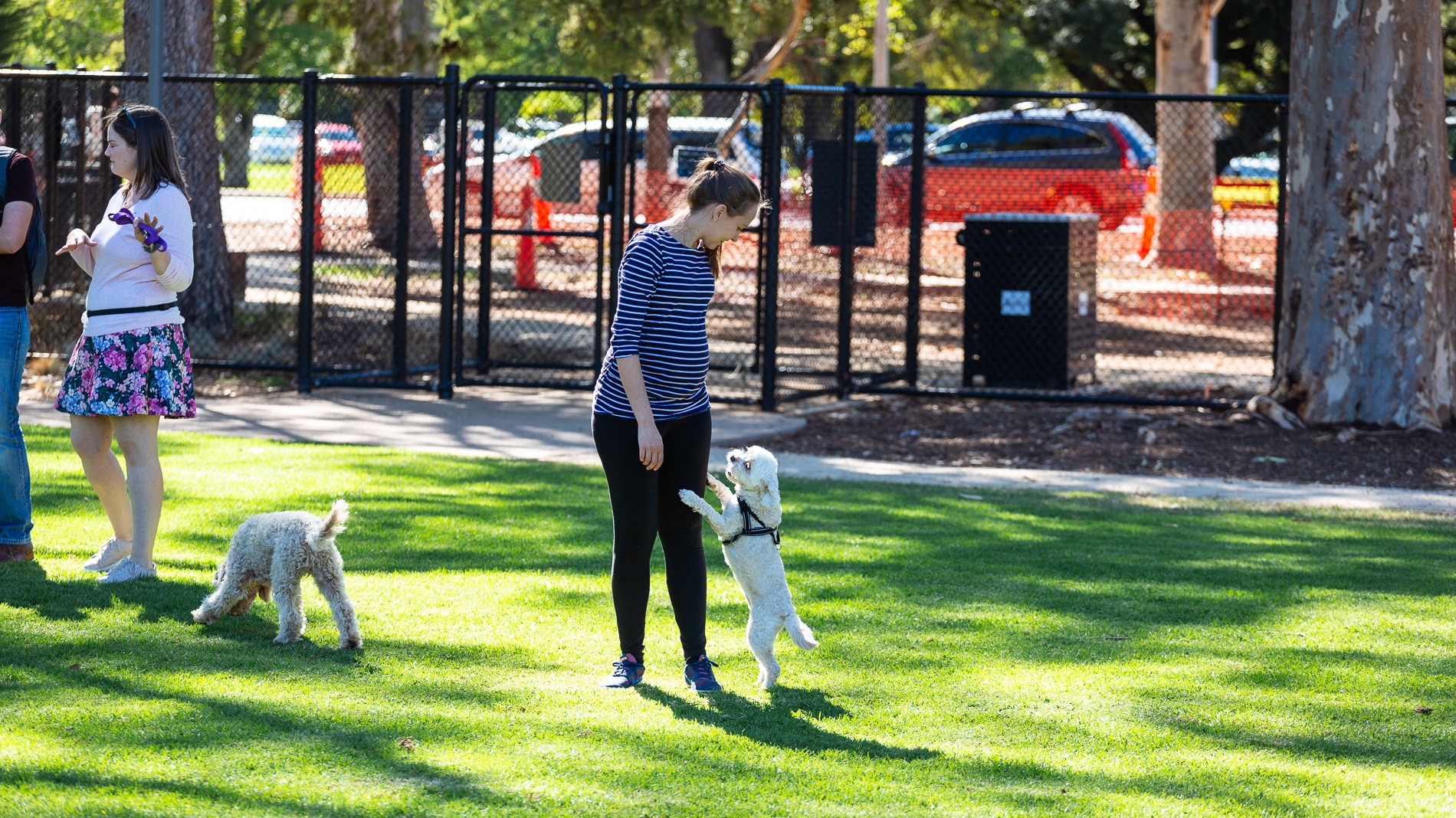- Adjoining dog parks are located at the northern end of the hub. They have proven to be the most popular new addition to the area. The site selected for the parks formerly housed netball courts and a club house, which were positioned among trees requiring remediation. The layout is best-practice approach and can accommodate large and small dogs in its separate off-leash areas with water fountains and water play particularly popular. Lighting, shelters, planting and seating transform the site.