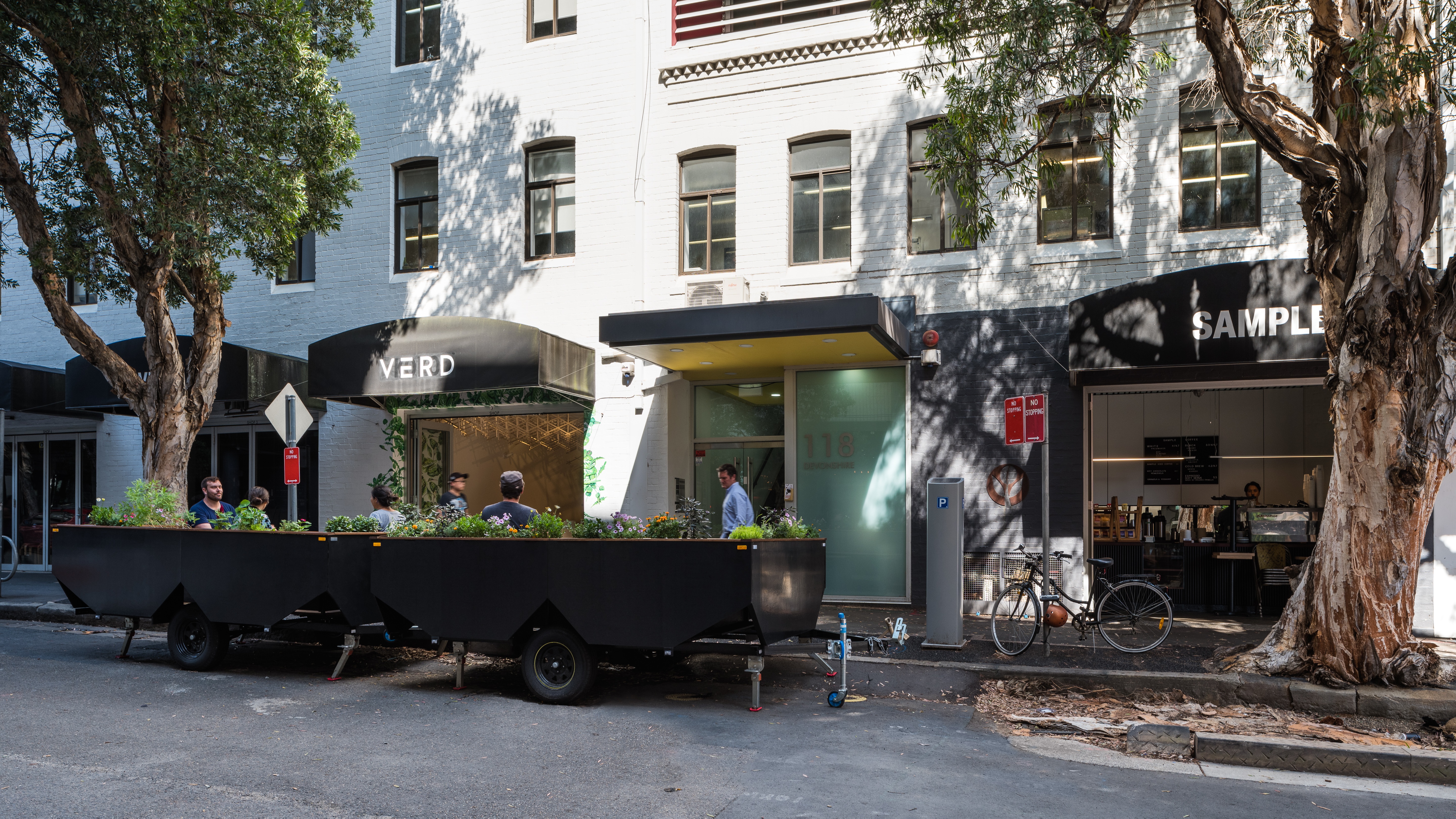 Their resulting trailer parklet design was successfully crowdfunded by the local business and resident community and two prototypes were built in 2016. Since this time parklets have been deployed in many streets across Sydney, including Kingsford, Surry Hills and Chippendale.