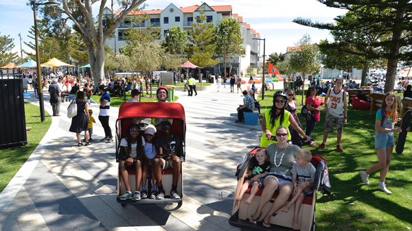 A variety of spaces has been created within the precinct. Each space is well provisioned with electrical outlets for activation. The spaces are attracting different demographics, and still encouraging mixing of age groups and abilities. It is expected that the local, regional and state cultural, sporting and general communities will begin engaging with these spaces for their own events over time, as with the Rockingham Beach Cup and the Long Table Lunch.