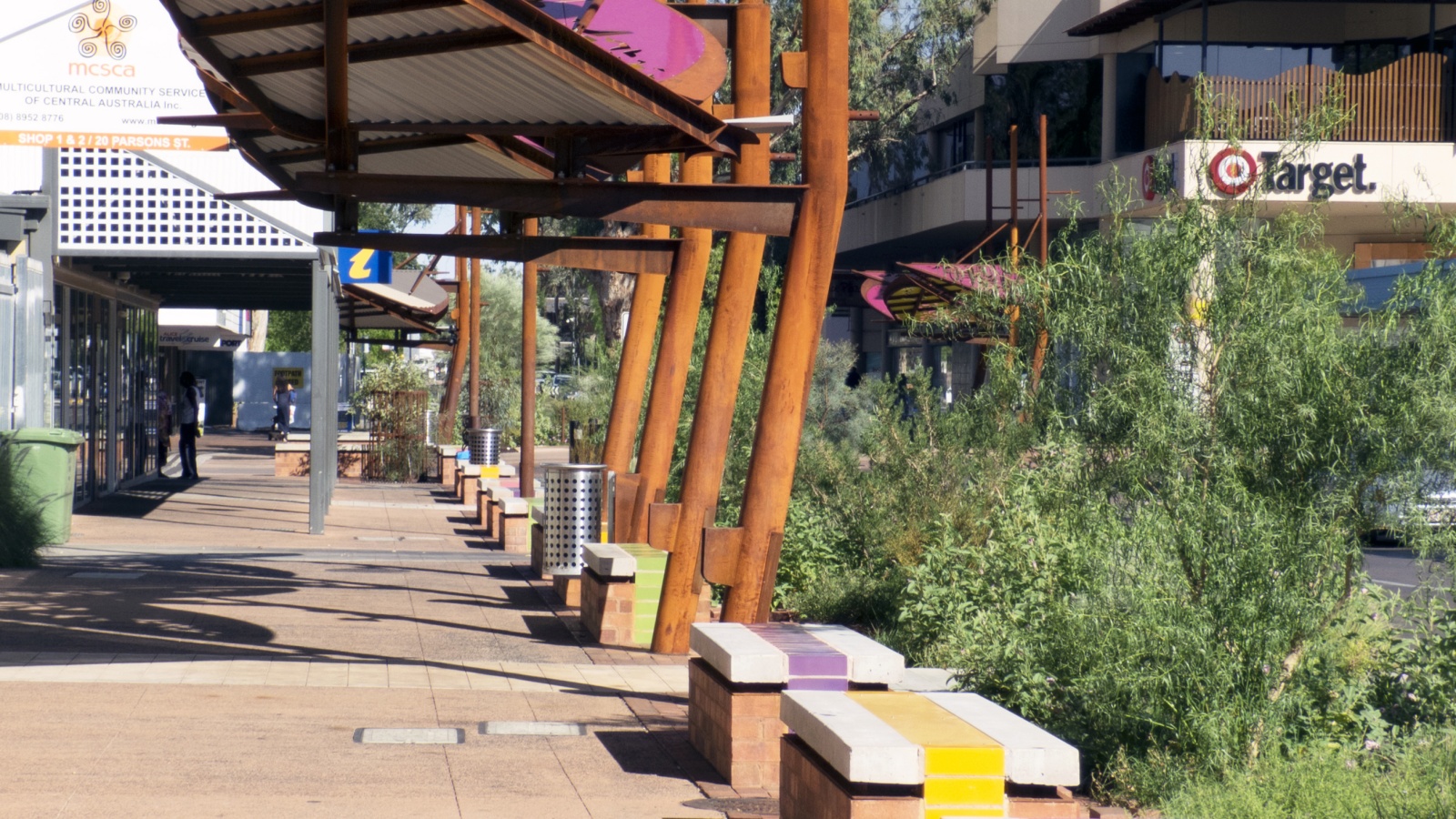 The northern end of Todd Street links through to the Alice Springs Cinema and Youth Hub and creates opportunities for teenagers and young adults to participate in the CBD, by challenging the view that they are a problem and a likely source of ‘anti-social behaviour’. To achieve this, the northern end of the street is intentionally inclusive and supportive of youth gatherings and activity.