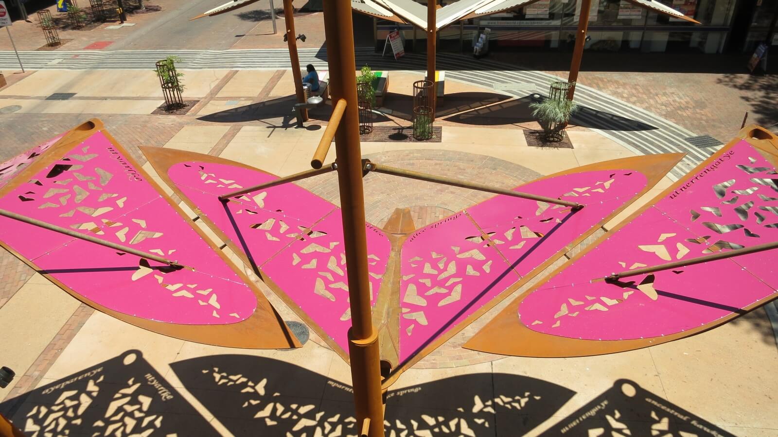 - The Caterpillar Seats in the area are another reference to the dreamtime beings who formed the Mparntwe landscape, and are designed to encourage skateboarding and play by pre-school age children. The lighting, including a programmable light sculpture by local artist Ben Ward, has been especially considered to support the night activity around the cinema.