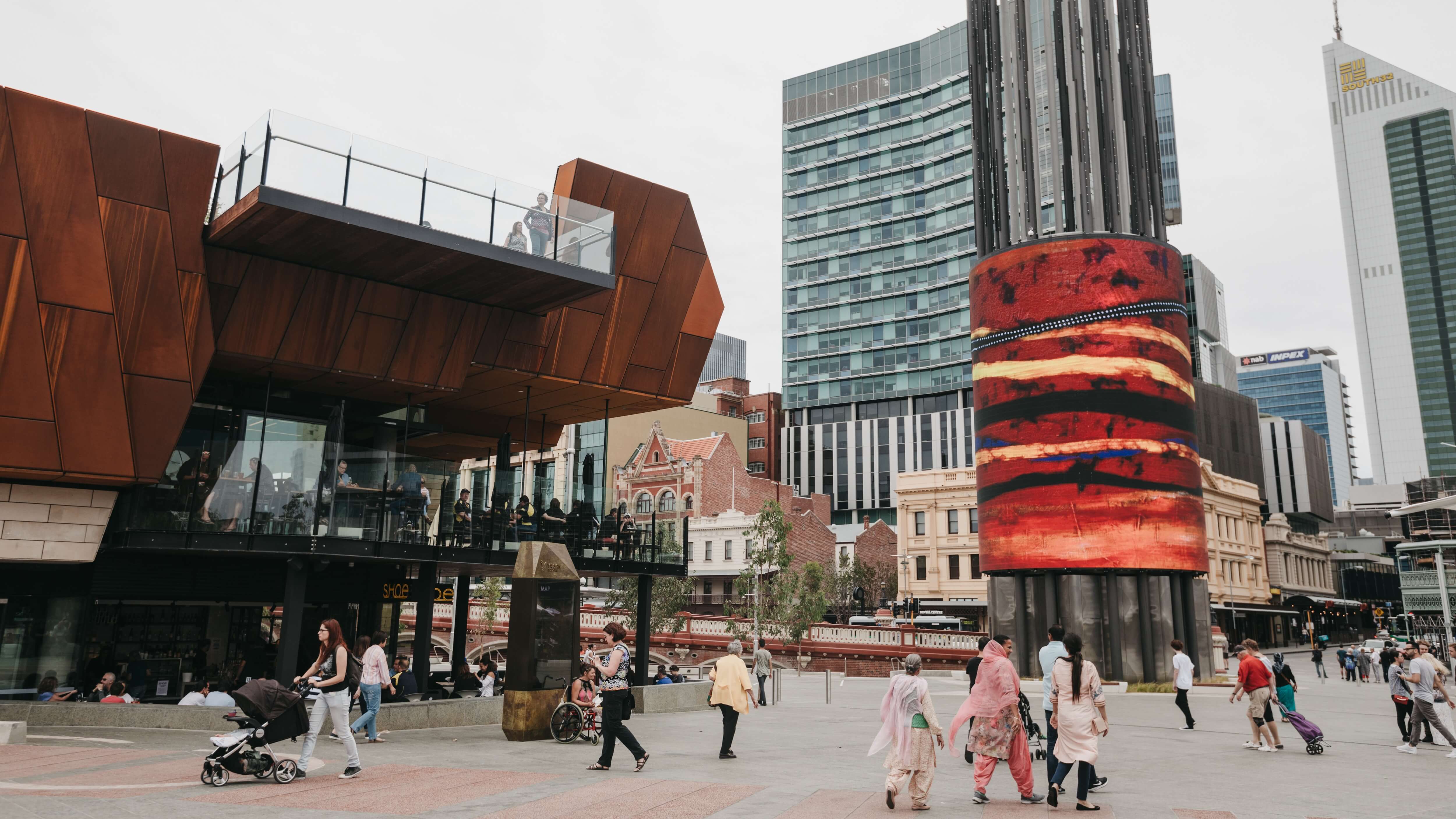 - Public artworks, heritage interpretation, architecture and landscape design all contribute to the unique sense of place at Yagan Square.