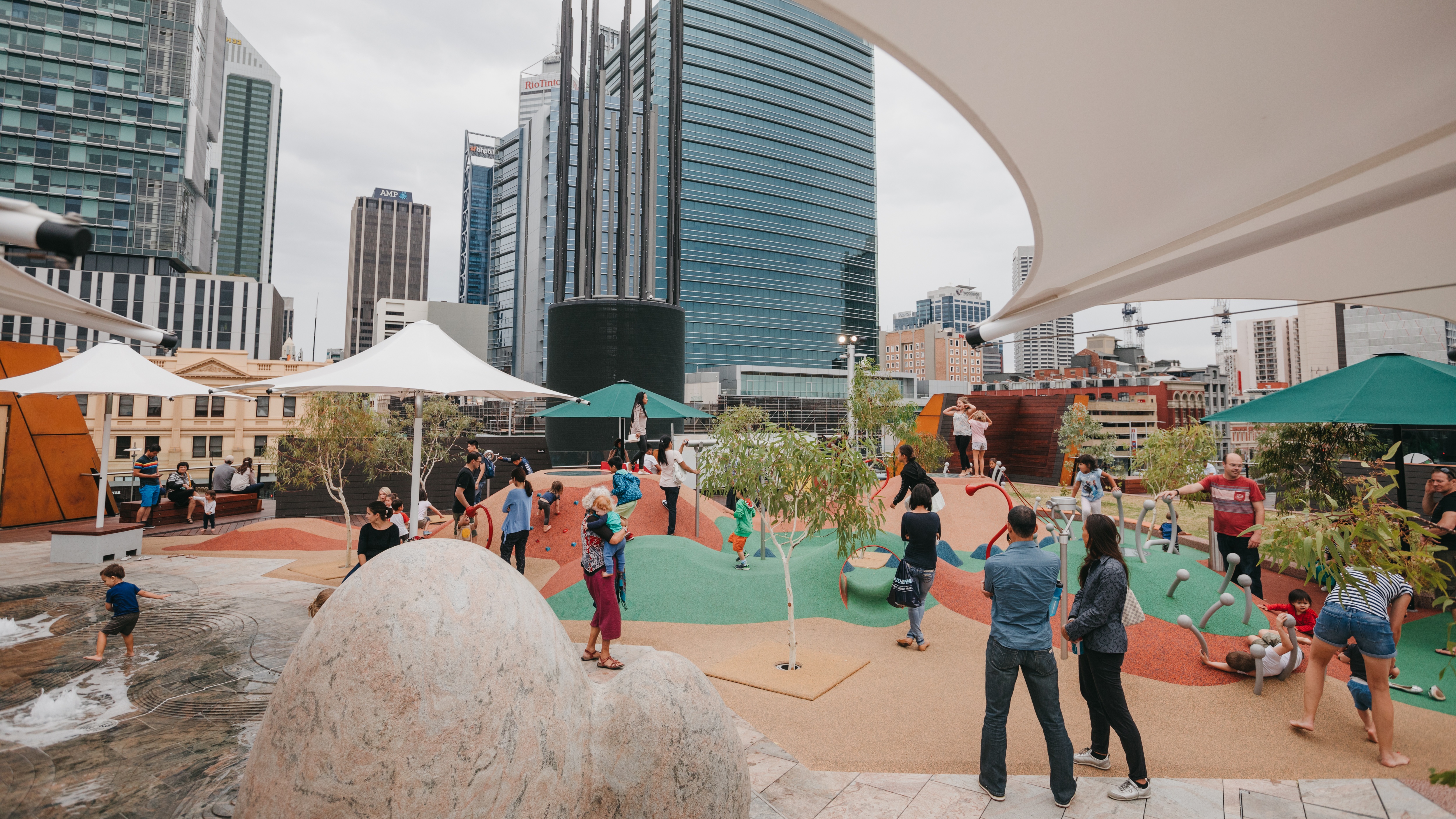 - Re-establishes an important pedestrian link through the city of Perth, encouraging pedestrian movement between Northbridge and the CBD and Swan River.